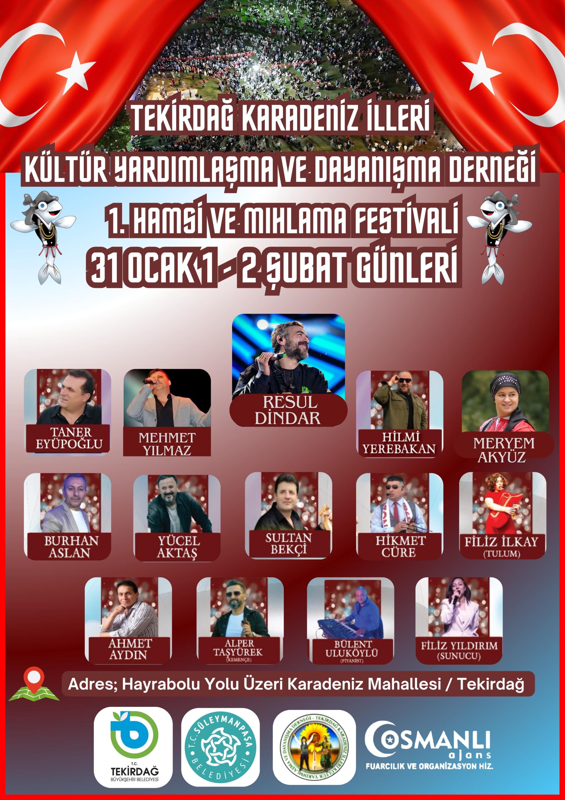 Karadeniz kültürünü Tekirdağ’da yaşatmayı amaçlayan bu renkli festivalin halkın yoğun ilgisini çekmeye aday olduğunu anlatan Akyüz, Hamsi ve mıhlama sevenler için kaçırılmayacak bir etkinlik olacağını ifade etti.Festival Programı: