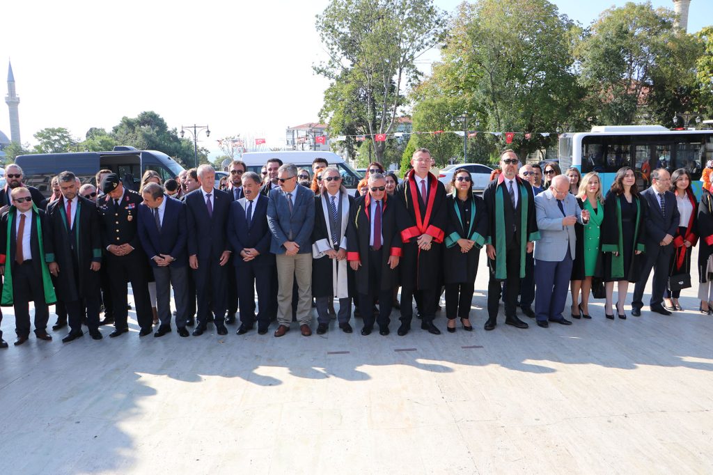 2023-2024 Adli Yıl açılışı nedeniyle, Tekirdağ Valiliği önünde bulunan Atatürk anıtı önünde çelenk sunma töreni düzenlendi. Çelenklerin anıta sunulmasının ardından, saygı duruşu ve istiklal marşı okundu. Düzenlenen törene; Tekirdağ Vali Yardımcısı Asalet Karabulut, Süleymanpaşa Kaymakamı Mustafa Güler, Bölge Adliye Mahkemesi Başsavcısı Ünal Bingül, Tekirdağ Cumhuriyet Başsavcısı Soner Gül, Baro Başkanı Avukat Egemen Gürcan ve avukatlar katıldı.