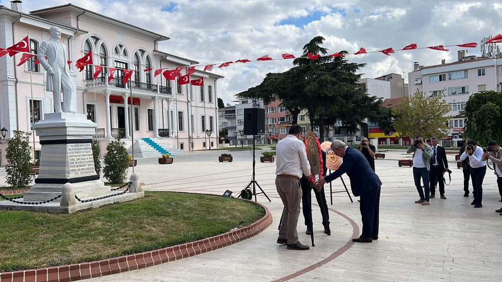 Tekirdağ’ın Süleymanpaşa ilçesinde Ahilik haftası etkinlikleri kapsamında Atatürk anıtına çelenk