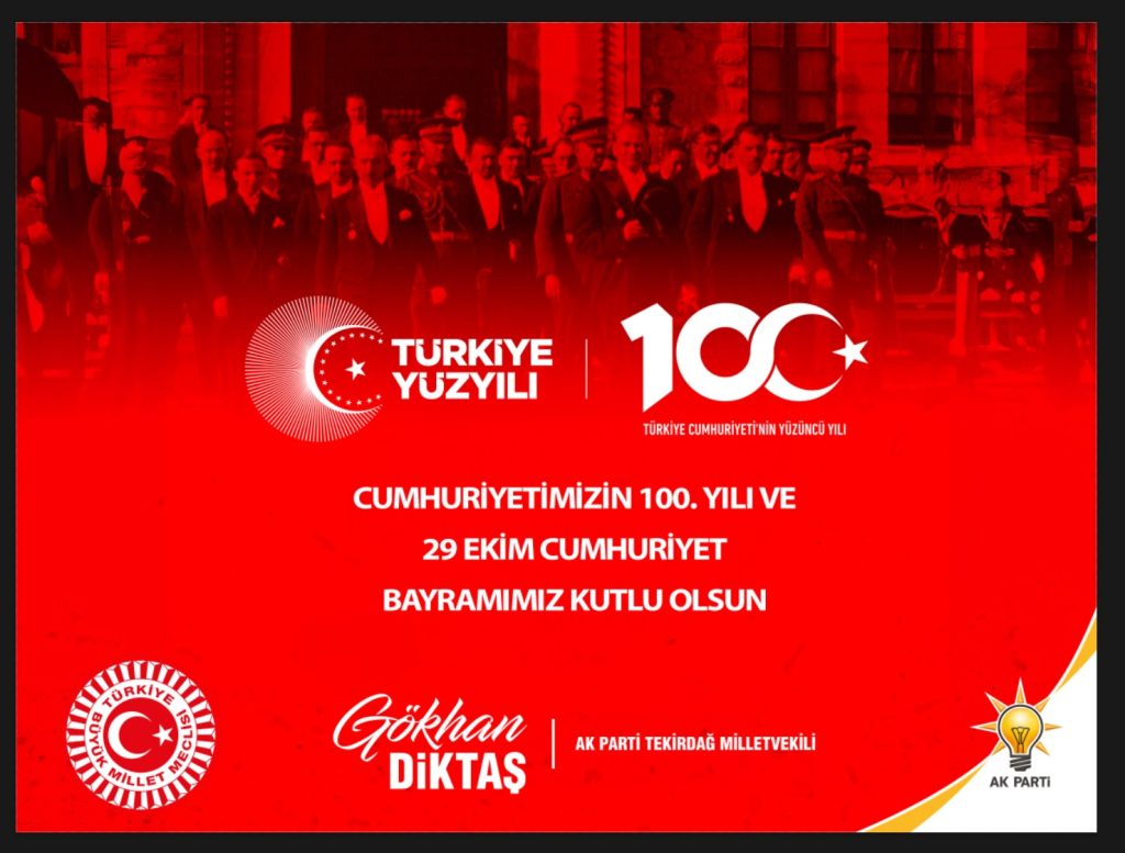 Ana Sayfa › Sürmanşet › AK Parti Tekirdağ Milletvekili Gökhan Diktaş’ın Cumhuriyet Bayramı MesajıAK Parti Tekirdağ Milletvekili Gökhan Diktaş’ın Cumhuriyet Bayramı Mesajı Ajans Tekirdağ TÜM YAZILARI Giriş: 28-10-2023 21:53 0 Sürmanşet ABONE OL
