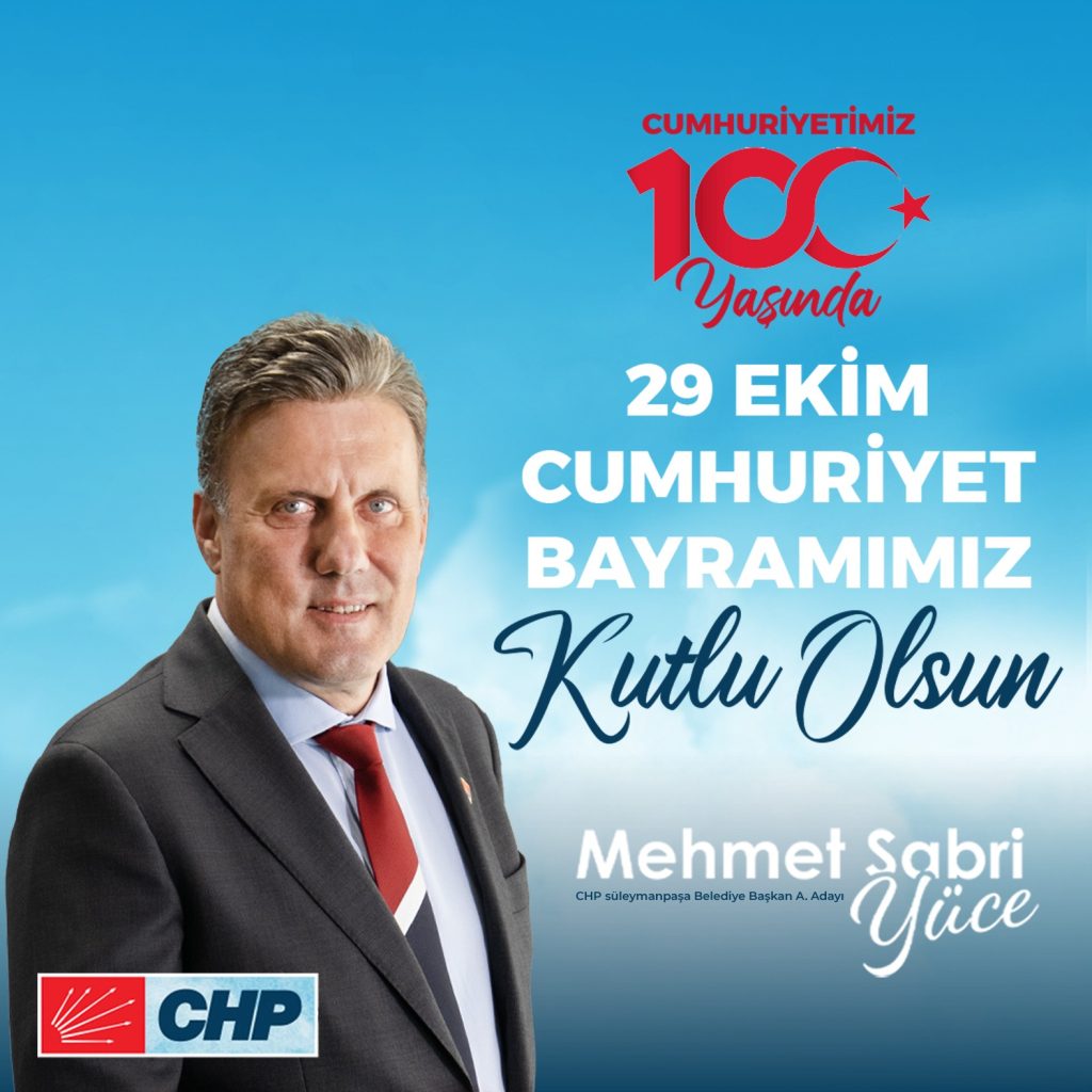 Ana Sayfa › Sürmanşet › CHP Süleymanpaşa Belediye Başkan A. Adayı Mehmet Sabri Yüce’nin Cumhuriyet Bayramı MesajıCHP Süleymanpaşa Belediye Başkan A. Adayı Mehmet Sabri Yüce’nin Cumhuriyet Bayramı Mesajı Ajans Tekirdağ TÜM YAZILARI Giriş: 28-10-2023 10:06 0 Sürmanşet ABONE OL
