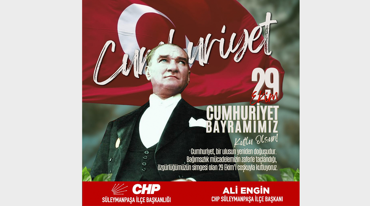 Ana Sayfa › Sürmanşet › CHP Süleymanpaşa İlçe Başkanı Ali Engin 29 Ekim Cumhuriyet Bayramı MesajıCHP Süleymanpaşa İlçe Başkanı Ali Engin 29 Ekim Cumhuriyet Bayramı Mesajı Ajans Tekirdağ TÜM YAZILARI Giriş: 28-10-2024 22:03 0 Sürmanşet ABONE OL