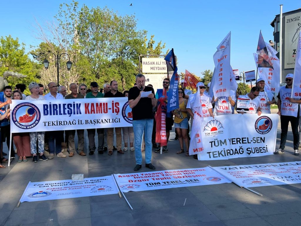 Türkiye’nin dört bir yanında konuyla ilgili basın açıklamalarının yapıldığı organizasyonun Tekirdağ ayağında Birleşik Kamu İş’e bağlı Tüm Yerel Sen ve Eğitim İş başta olmak üzere bağlı sendika üyeleri toplu sözleşme taleplerini gür sesle dile getirdiler.