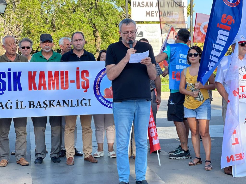 Hasan Ali Yücel Meydanı’nda gerçekleşen basın açıklamasına Kamu Konfederasyonları Platformu üyelerinin yanı sıra CHP Tekirdağ Milletvekili Nurten Yontar, CHP Süleymanpaşa İlçe Başkanı Ali Engin, DEVA Partisi Süleymanpaşa İlçe Başkanı Ozan Varan, Ziraat Mühendisleri Odası Başkanı Cemal Polat, ve bazı sivil toplum kuruluşları temsilcileri de destek verirken platform adına basın açıklamasını gerçekleştiren Rıdvan Dırak konuşmasında şunları söyledi: