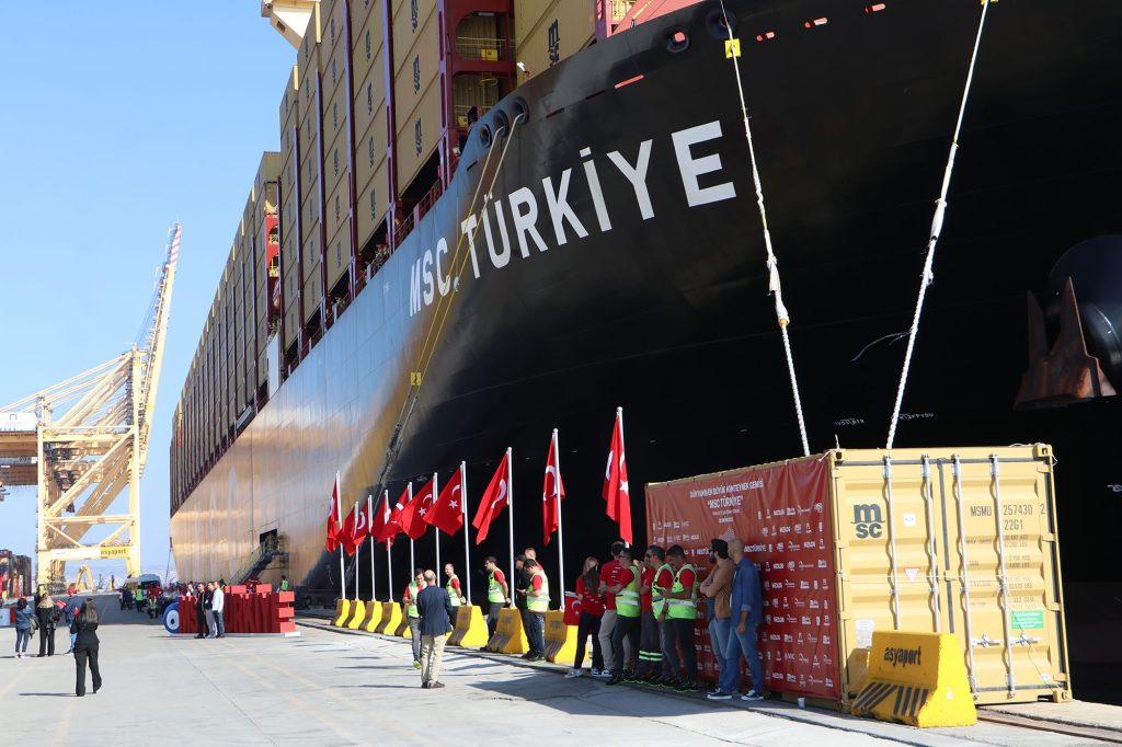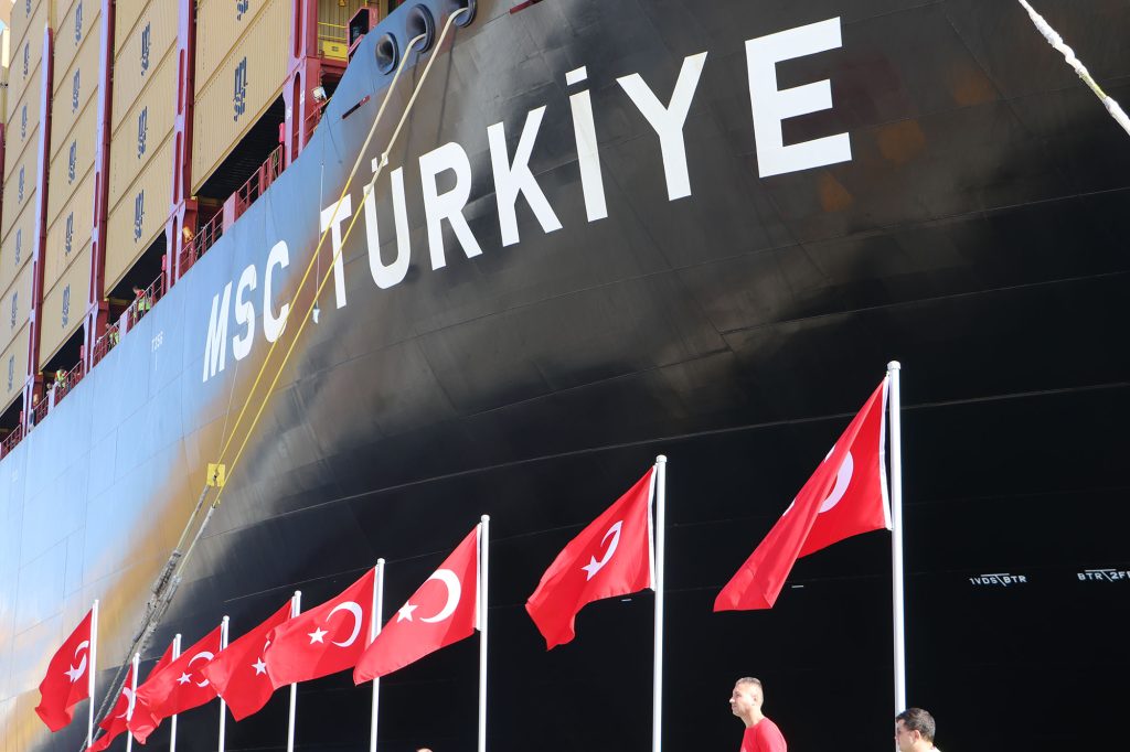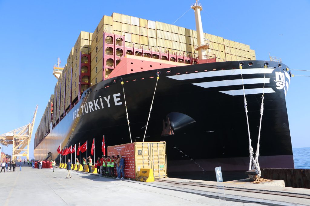 Dünya taşımacılık devi MSC’nin İtalyan sahipleri Aponte ailesinin Çin’de inşaa ettirdiği Dünya’nın en büyük konteynır gemisi olan ve Cumhuriyet’in 100. Yılı nedeniyle MSC Türkiye adı verilen gemi, 4 futbol sahası büyüklüğünde, 25 katlı apartman yüksekliğinde. MSC Türkiye 24 bin 346 konteynır taşıma kapasitesine sahip.