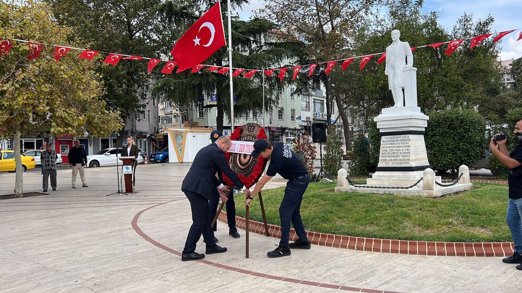 25 Eylül İtfaiye haftası ve İtfaiye teşkilatının kuruluşunun 309. Yıl dönümü nedeniyle, Tekirdağ Büyükşehir Belediyesi İtfaiye Daire Başkanlığı ekipleri, Tekirdağ Valiliği önünde bulunan Atatürk Anıtı’nda çelenk sunma töreni gerçekleştirildi. Büyükşehir Belediye Başkanlığının çelenginin Anıta sunulmasının ardından, saygı duruşu ve İstiklal marşı okundu.