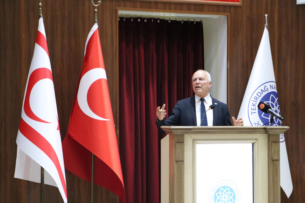 Kuzey Kıbrıs Türk Cumhuriyeti Cumhuriyet Meclis Başkanı Zorlu Töre, Namık Kemal Üniversitesinde ‘Milli Davamız Kıbrıs ve Mavi Vatan’ konulu konferansa katıldı.