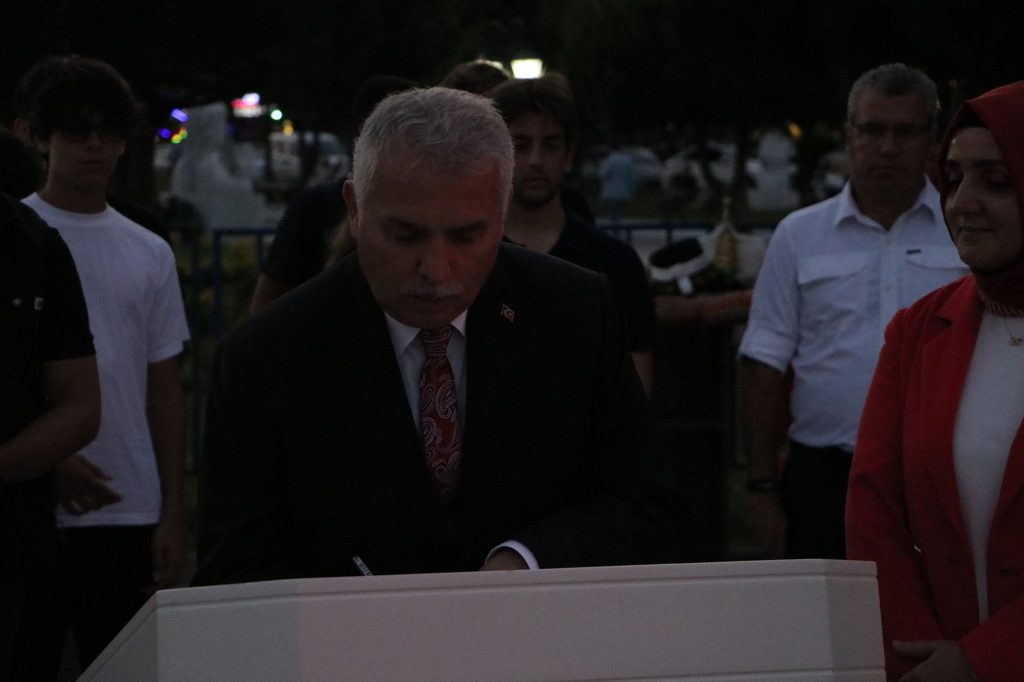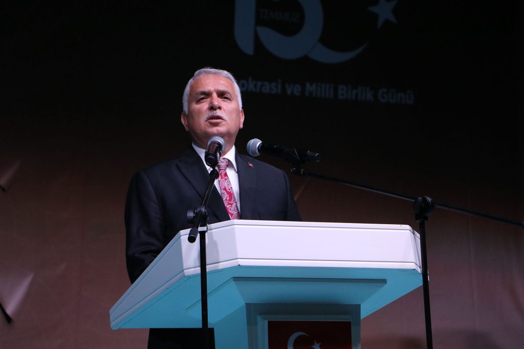 Devletten maaş alan asker görünümlü hainlerin milletin vergileriyle alınan tankları, uçakları, helikopterleri ve silahları millete çevirerek, düşmanların harp sahalarında bile yapamadıkları alçaklığı millete reva gördüğünü ifade eden Vali Aziz Yıldırım, “Milletimizi tanımayan, değerlerini özümsemeyen vatanına, ülkesine yabancılaşmış hainler, Türk milletinin tanklar, uçaklar ve silahlar karşısında korkacağını ve sineceğini zannettiler ancak Milletimiz bu hain darbe karşısında tarihinin en onurlu mücadelelerinden birini verdi. Cumhurbaşkanımız Recep Tayyip Erdoğan’ın darbeye karşı durma çağrısı yapmasının ardından milletimiz, yurdun dört bir köşesinde milli birlik ve beraberlik içerisinde, kardeşlik ruhuyla, büyük bir inanç, azim ve kararlılıkla gece boyunca mücadele vererek bedenini siper etmek suretiyle darbecilere geçit vermedi.” diye konuştu.