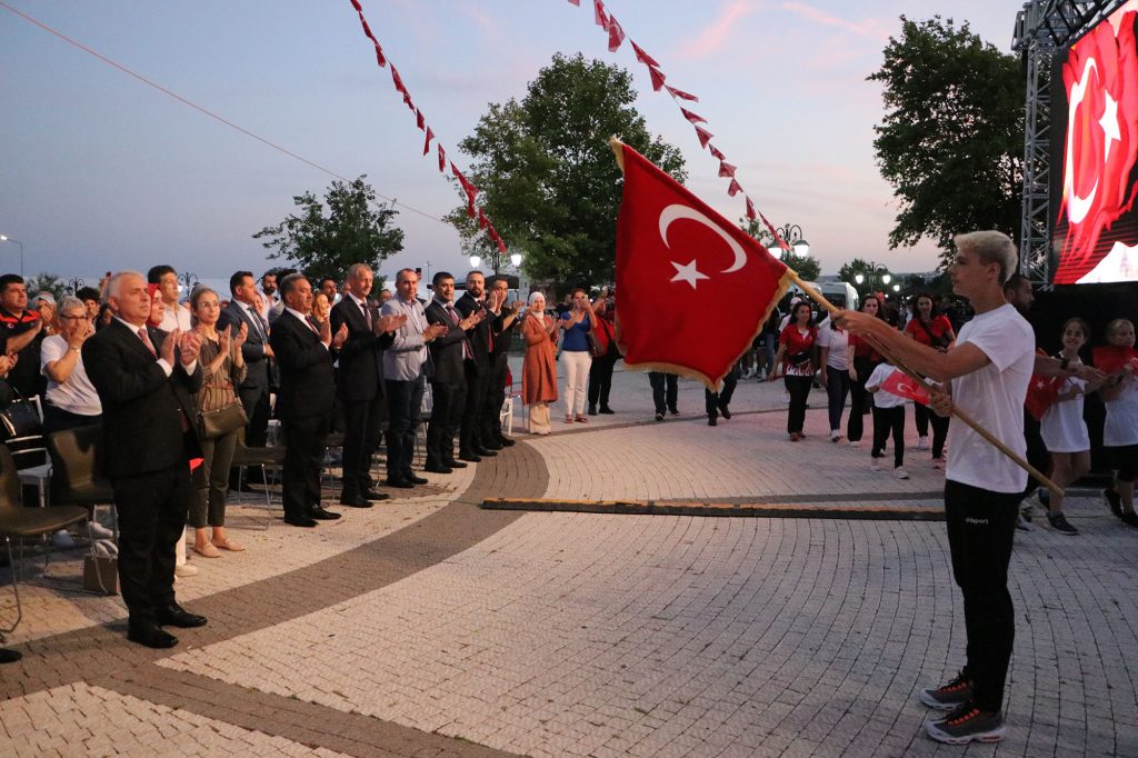 Sahil dolgu alanda kurulan tören alanına vatandaşlar yoğun ilgi gösterdi. Saygı duruşu ve İstiklal marşının okunmasıyla başlayan tören Kur’an-ı Kerim tilavetiyle devam etti. Tekirdağ Valisi Aziz Yıldırım, yaptığı konuşmada, 15 Temmuz 2016’da devletin ve milletin, hain bir saldırıya maruz kaldığını ve millet iradesinin gasp edilmeye çalışıldığını söyledi.