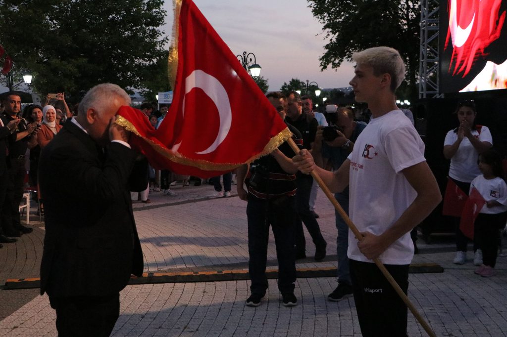 Tekirdağ Valisi Aziz Yıldırım’ın konuşmasının ardından 15 Temmuz Sancak Koşusuna katılan sporcular, sancağı Vali Yıldırım’a teslim etti. Programlar, başta Rüstempaşa Camisi olmak üzere kentlerdeki camilerden okunan selaların ardından sona erdi.