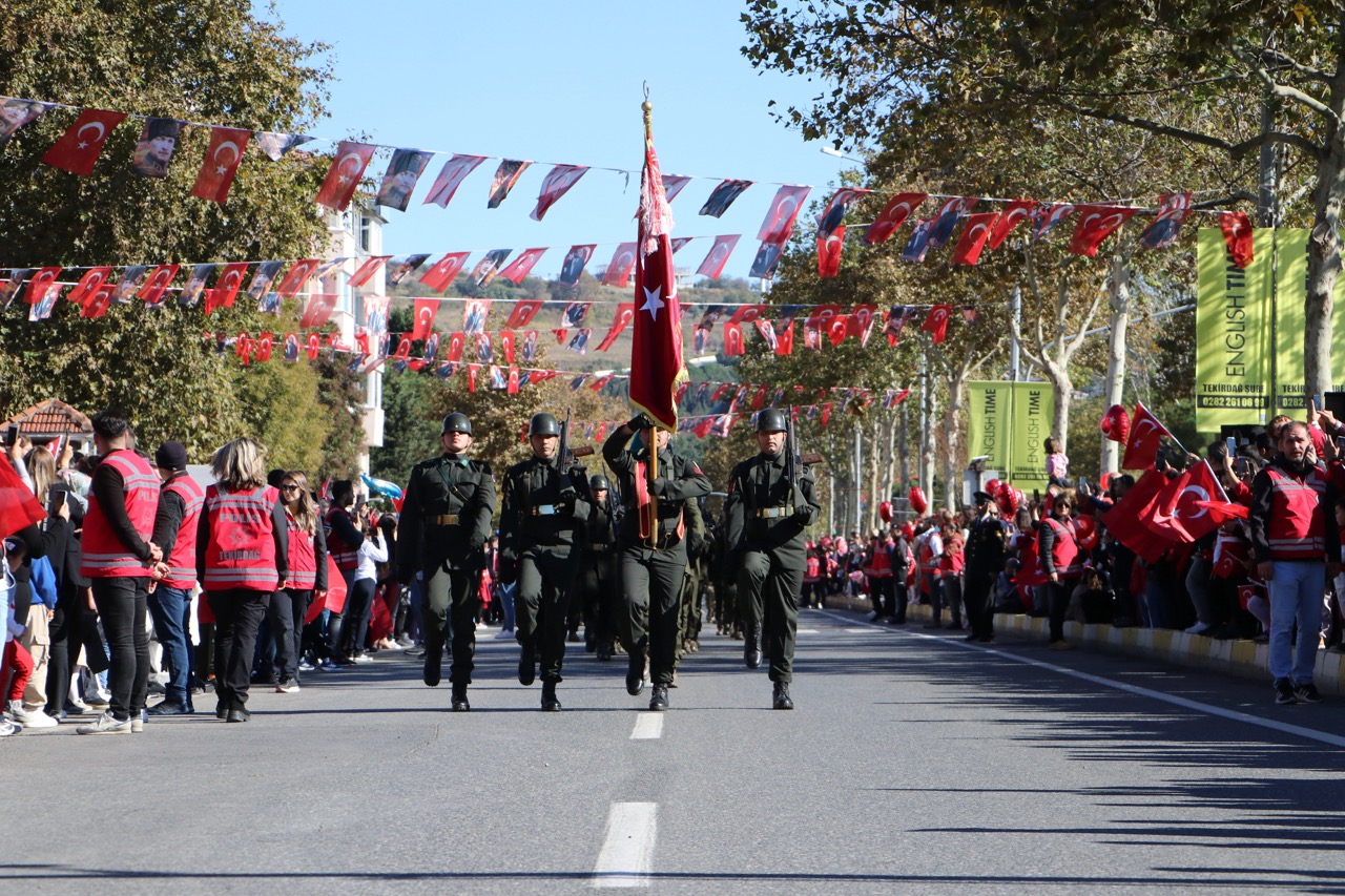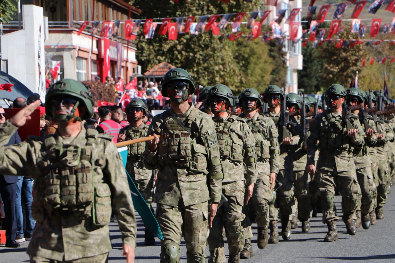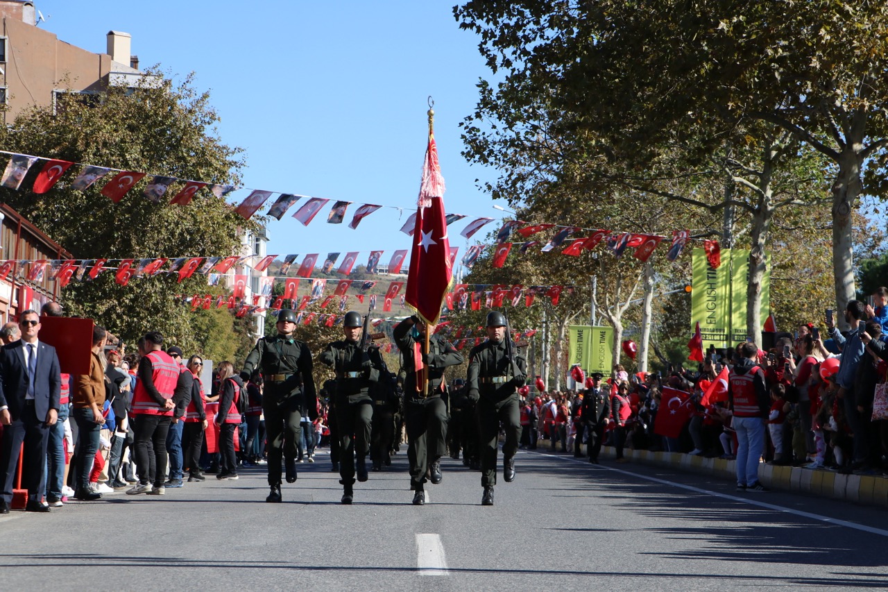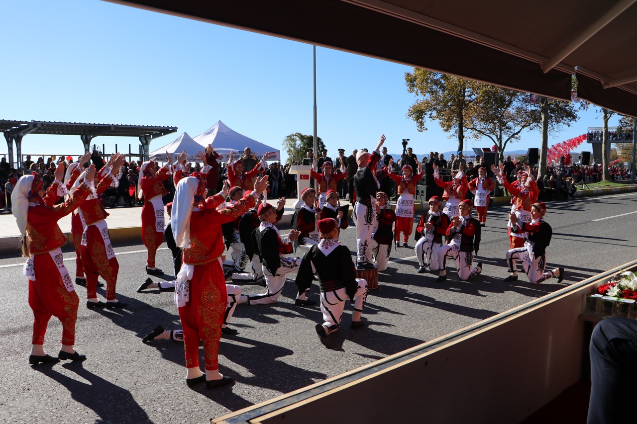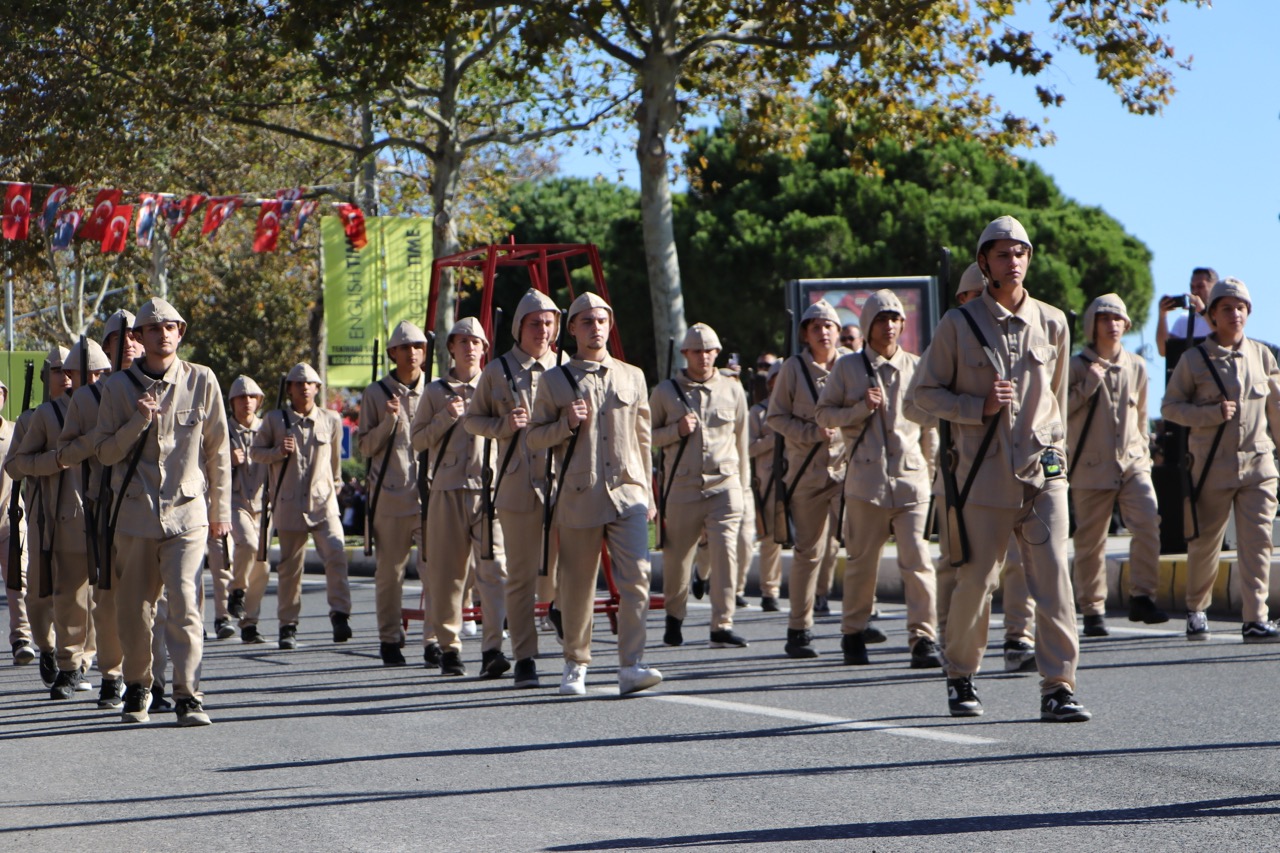 Tören, öğrenci ve askeri birliklerin geçişiyle sona erdi.