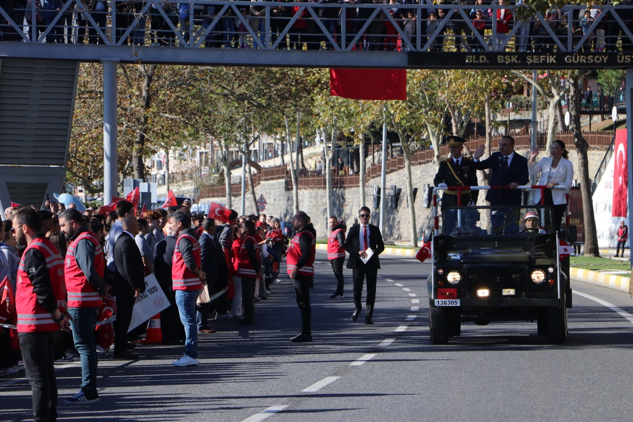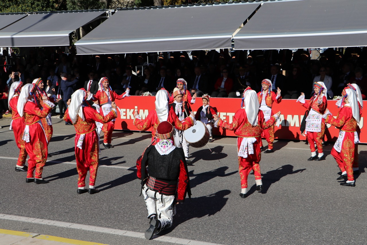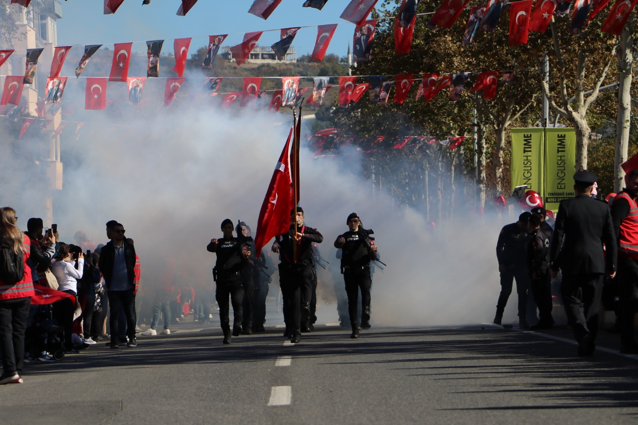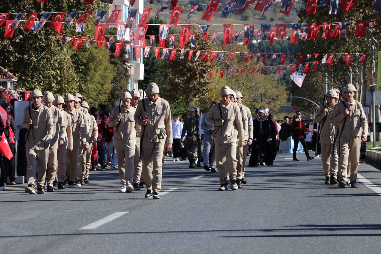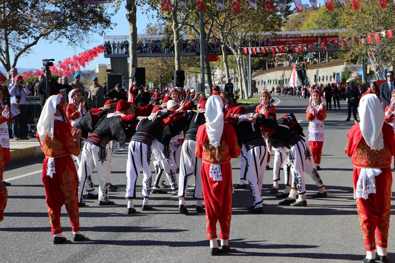 Tören, öğrenci ve askeri birliklerin geçişiyle sona erdi.