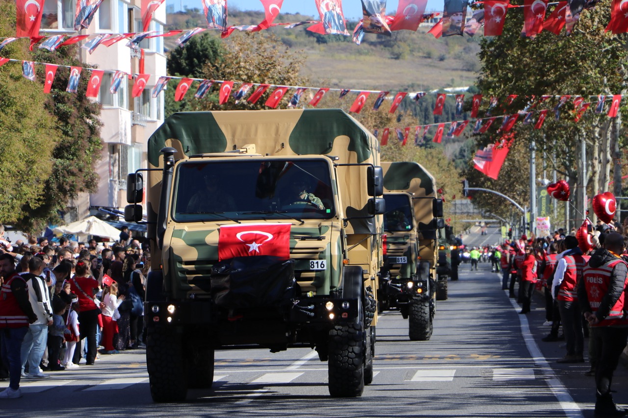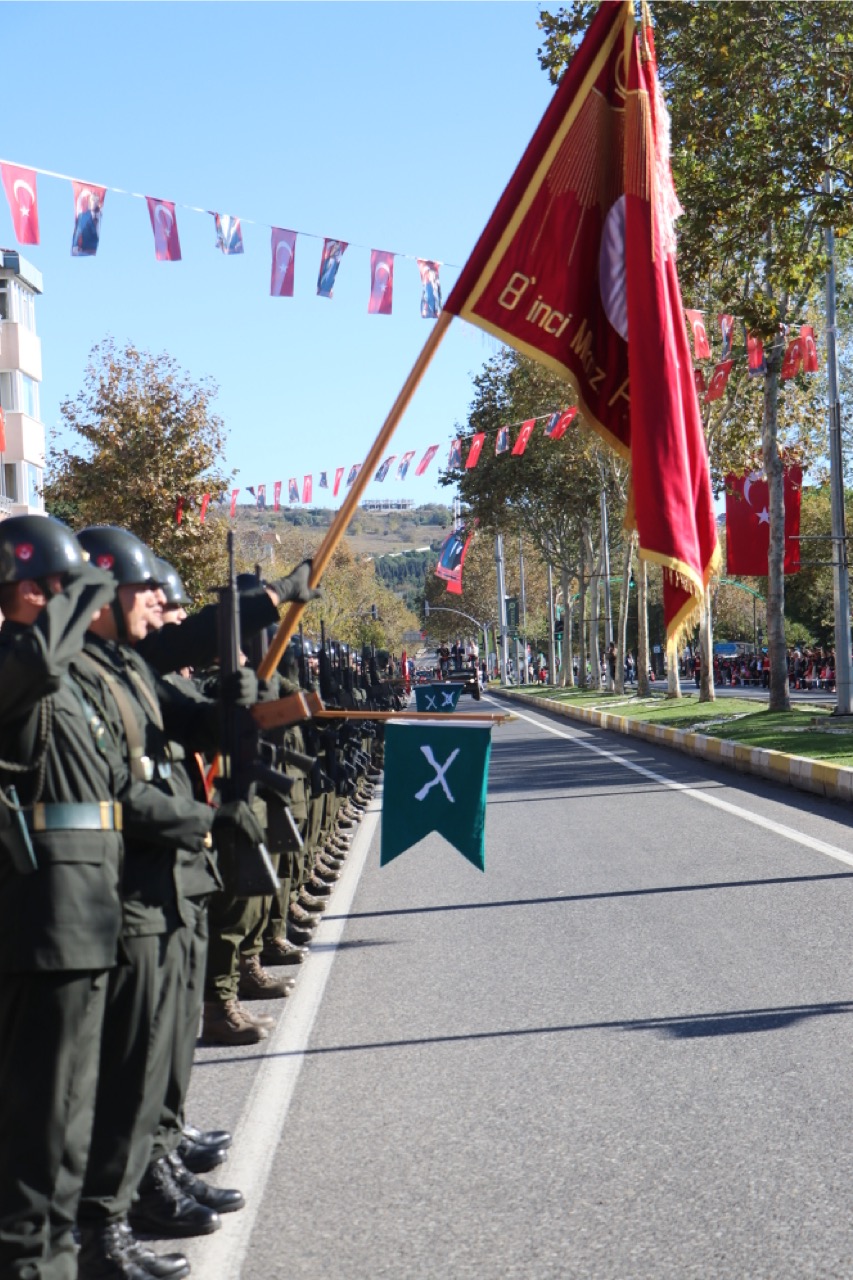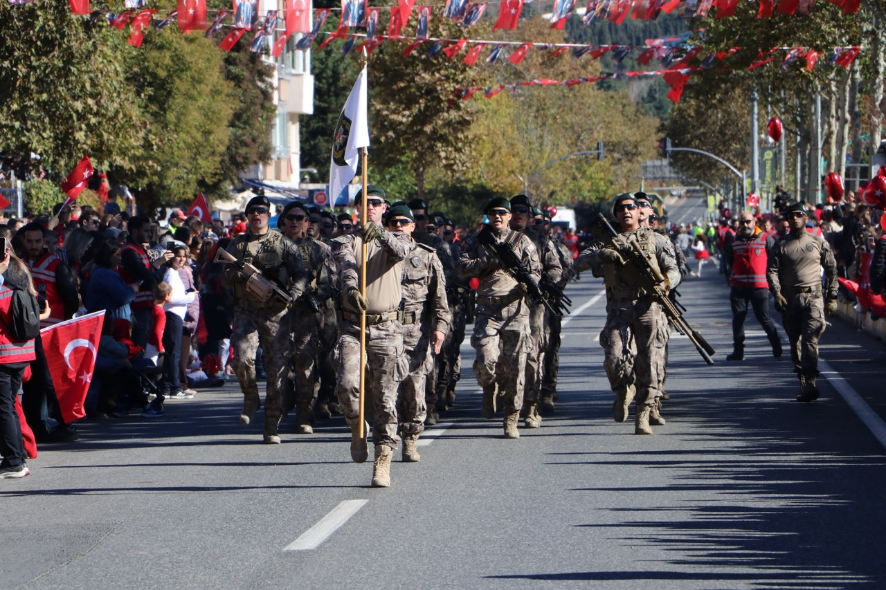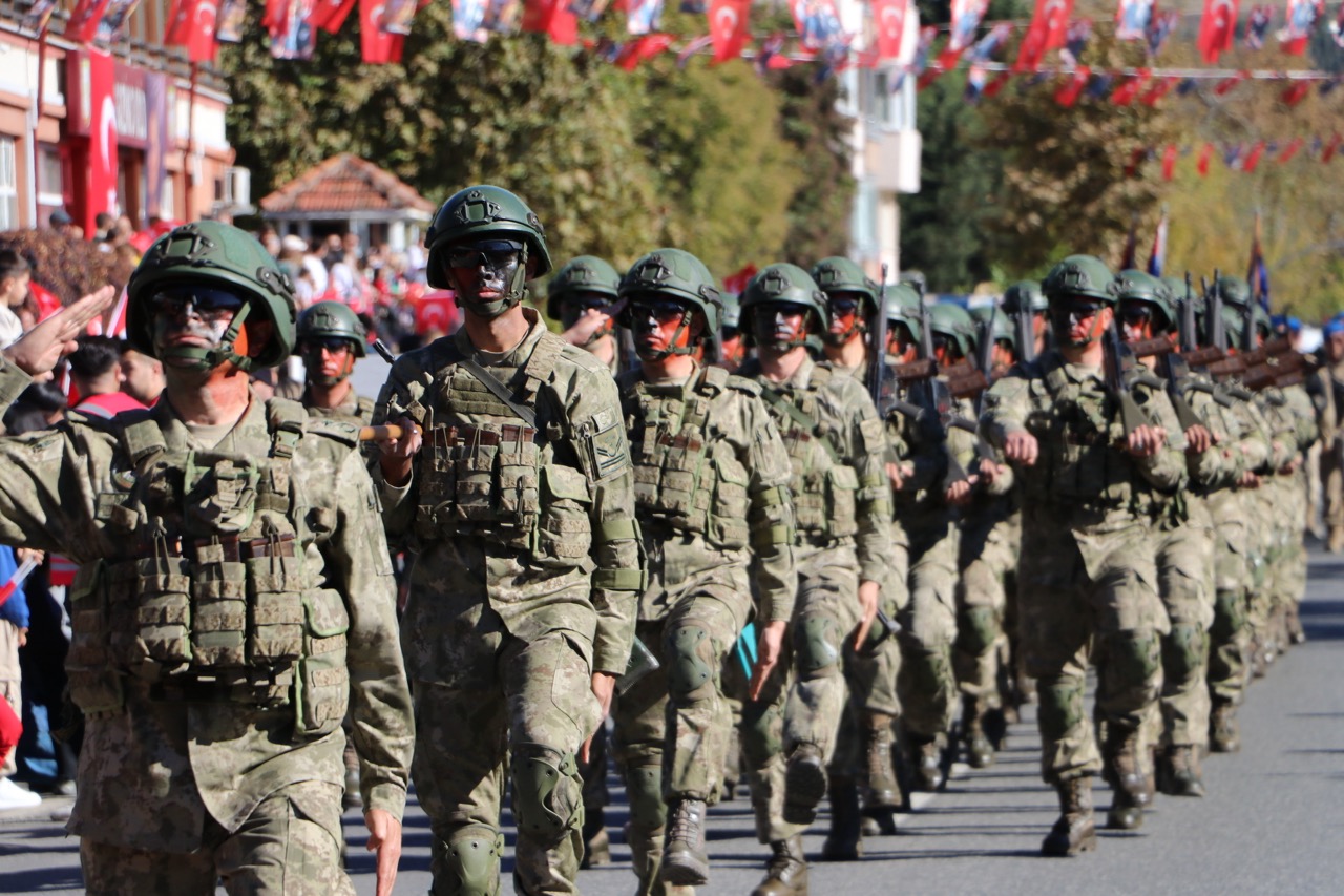 Tören, öğrenci ve askeri birliklerin geçişiyle sona erdi.