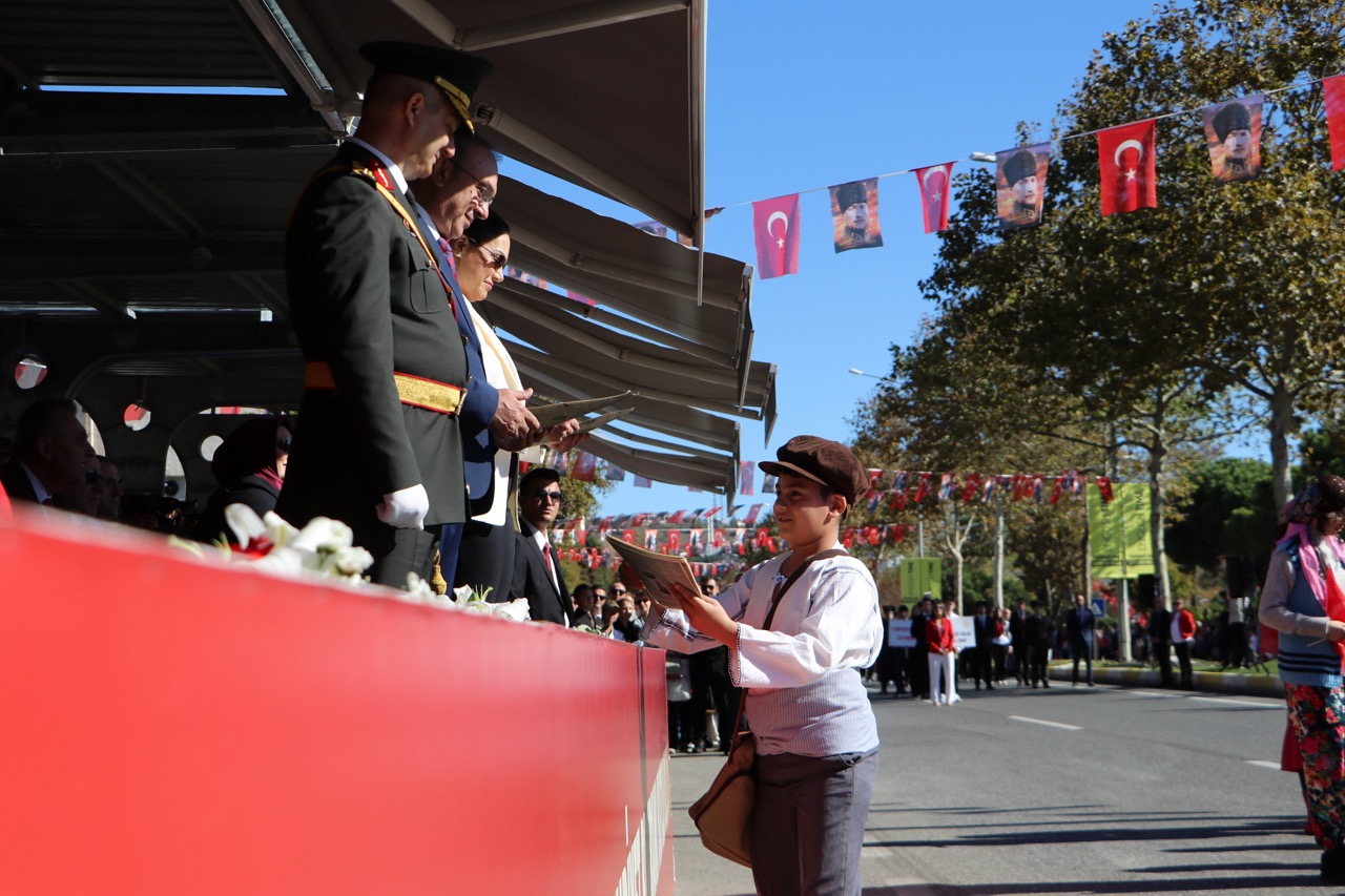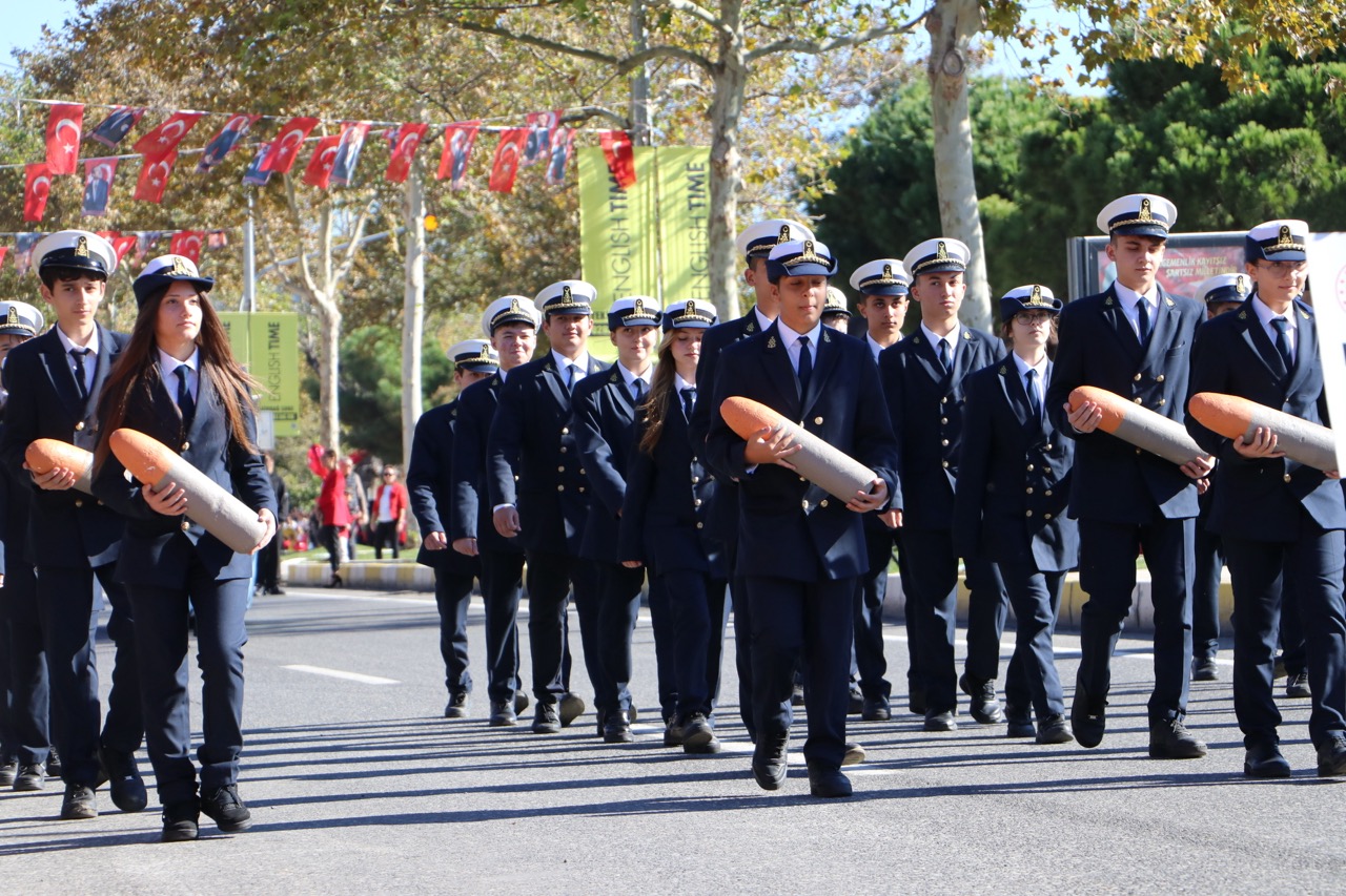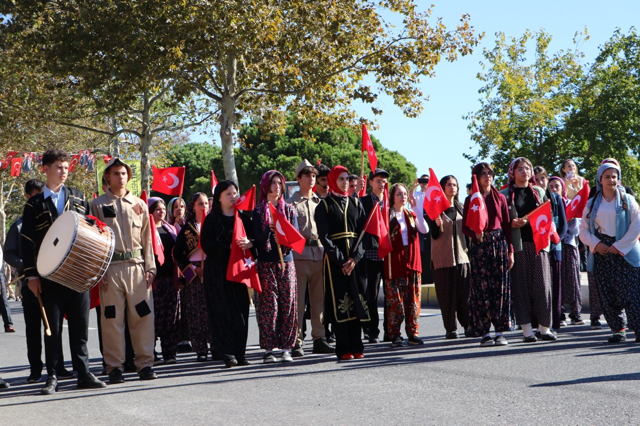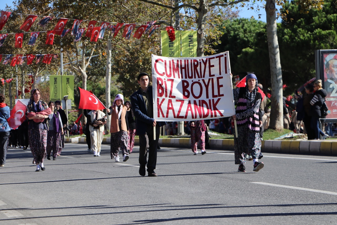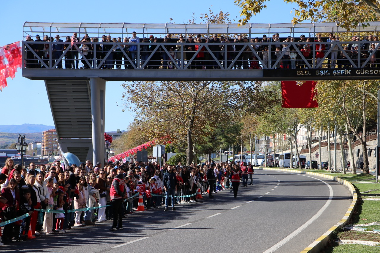 Tören, öğrenci ve askeri birliklerin geçişiyle sona erdi.
