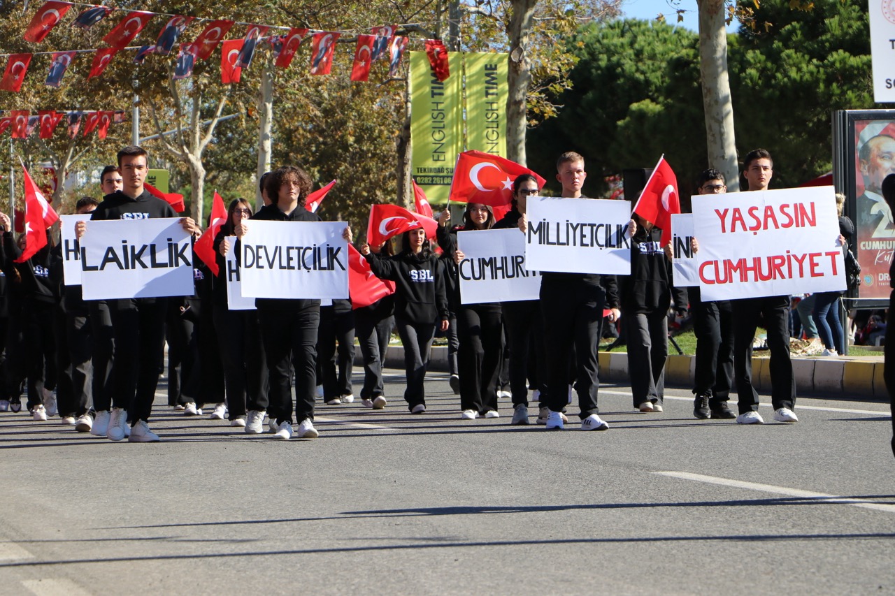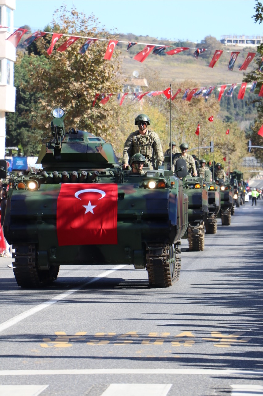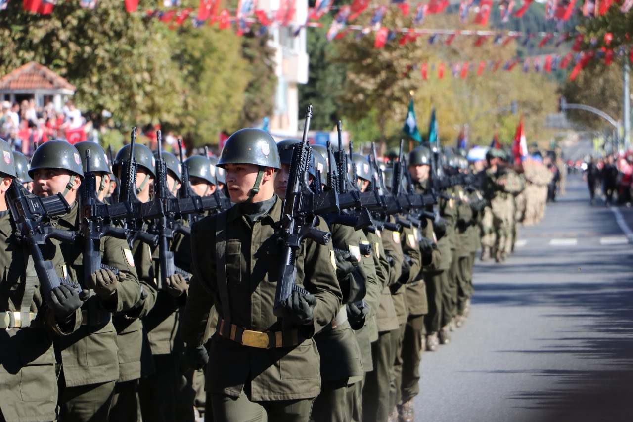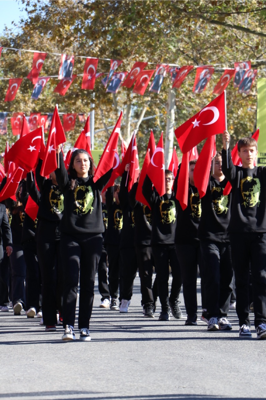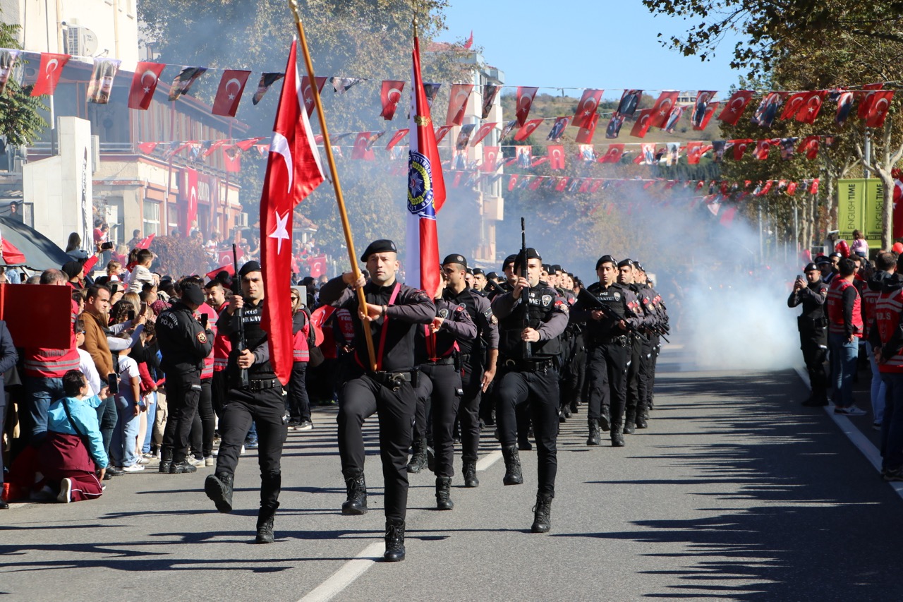 Tören, öğrenci ve askeri birliklerin geçişiyle sona erdi.