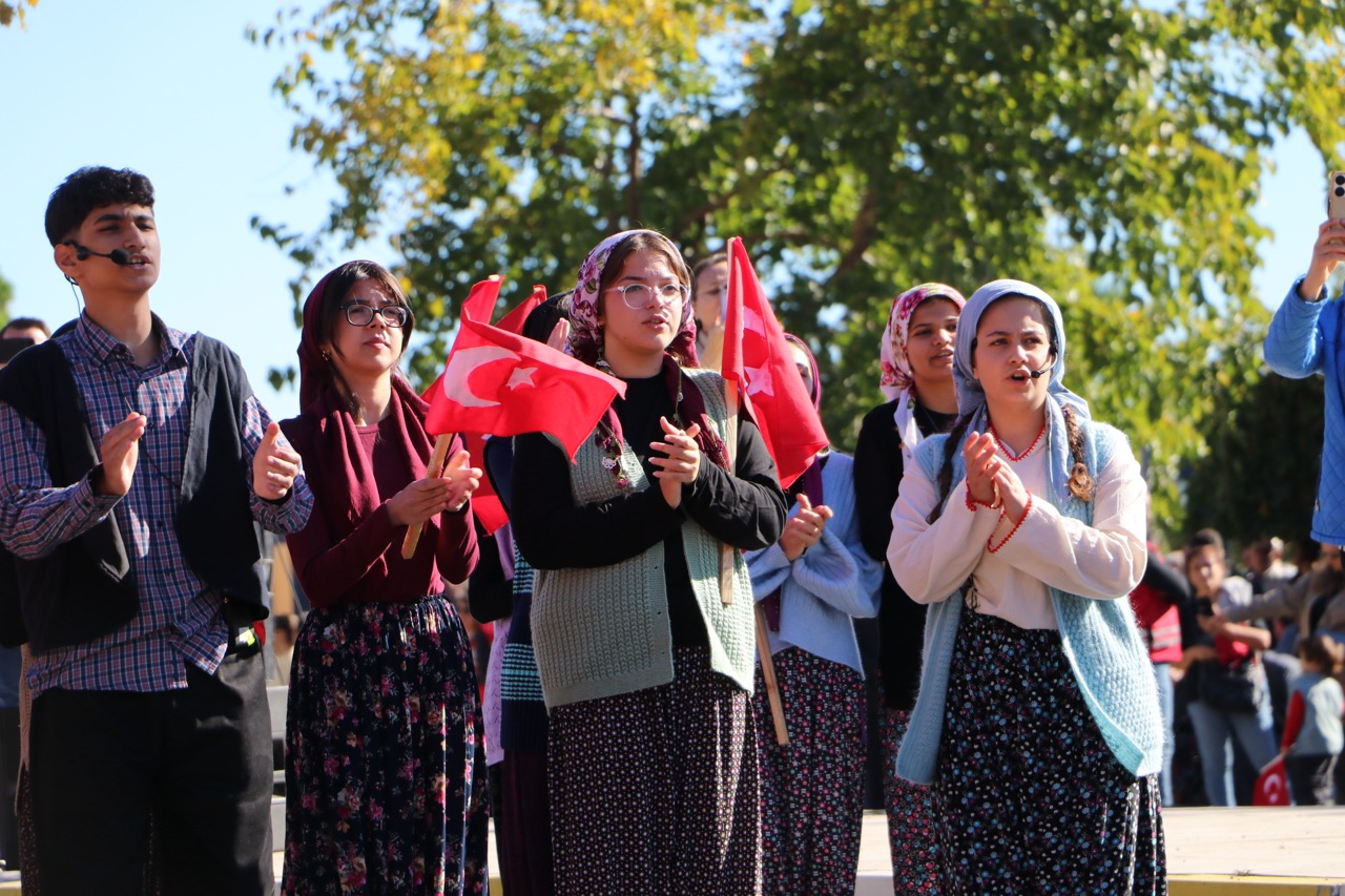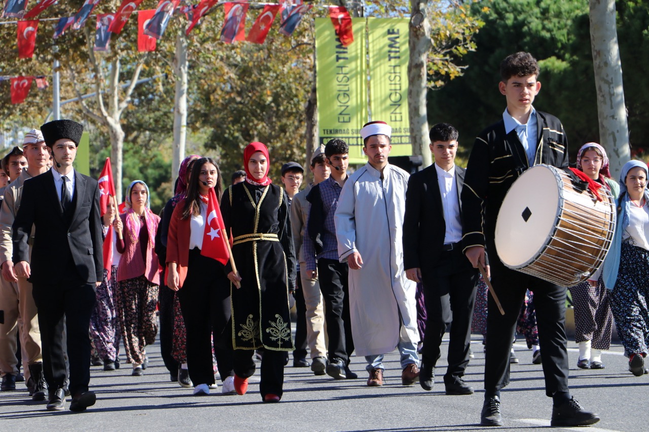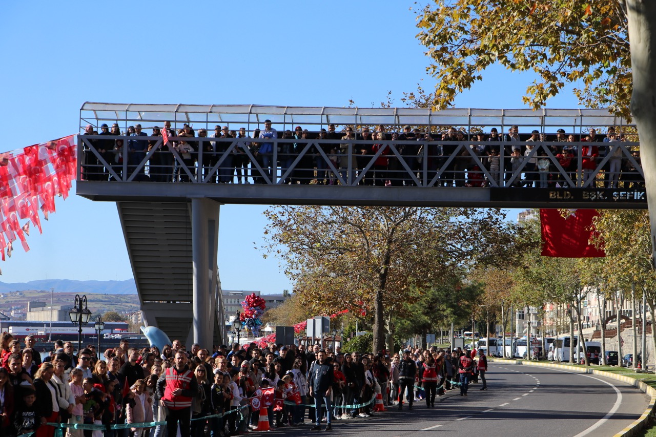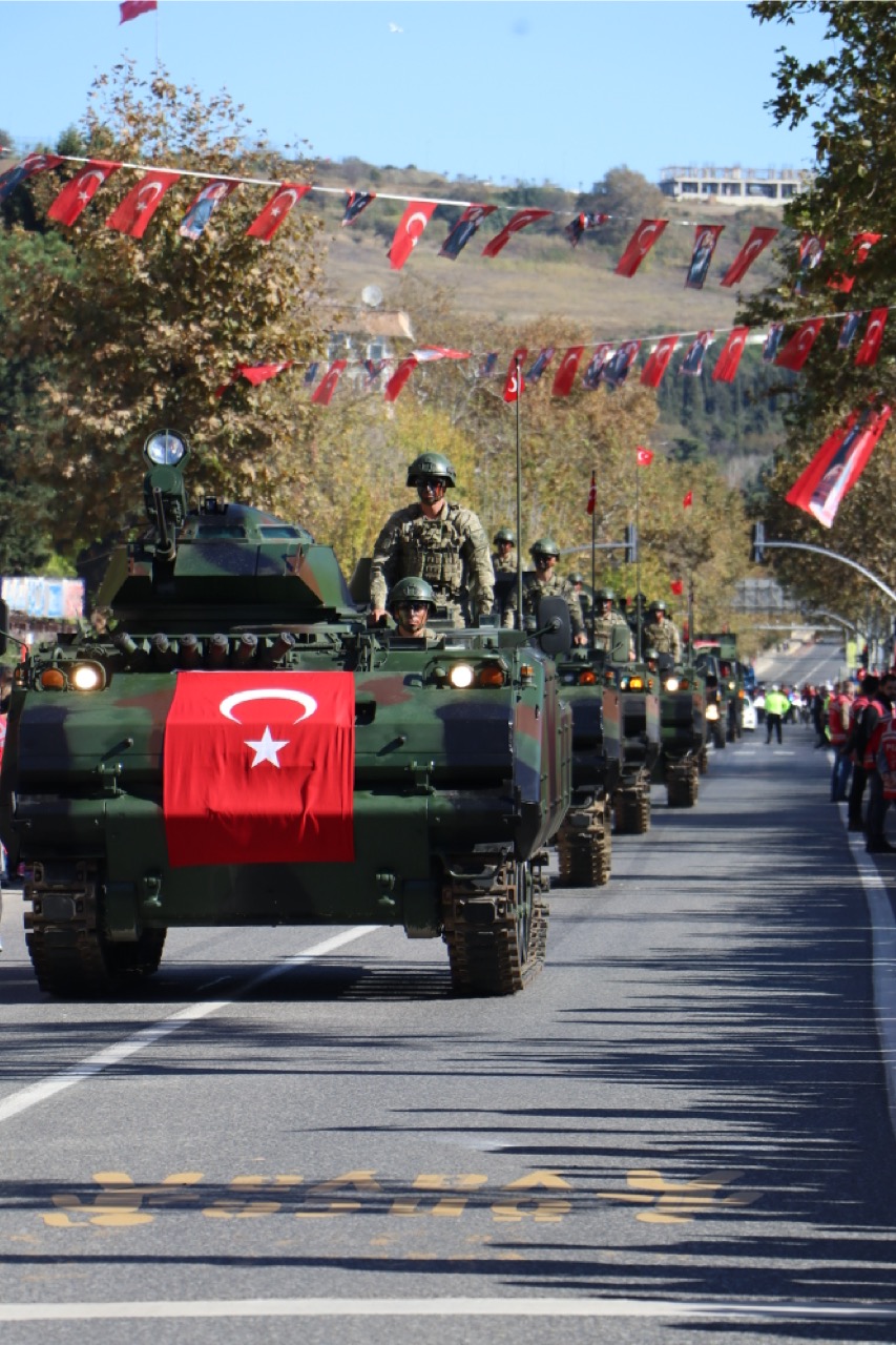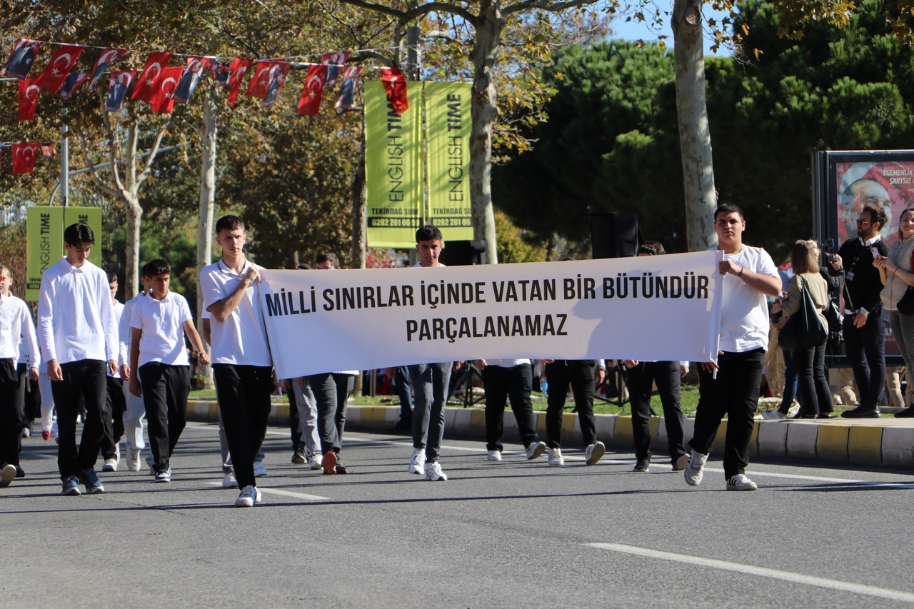Tören, öğrenci ve askeri birliklerin geçişiyle sona erdi.