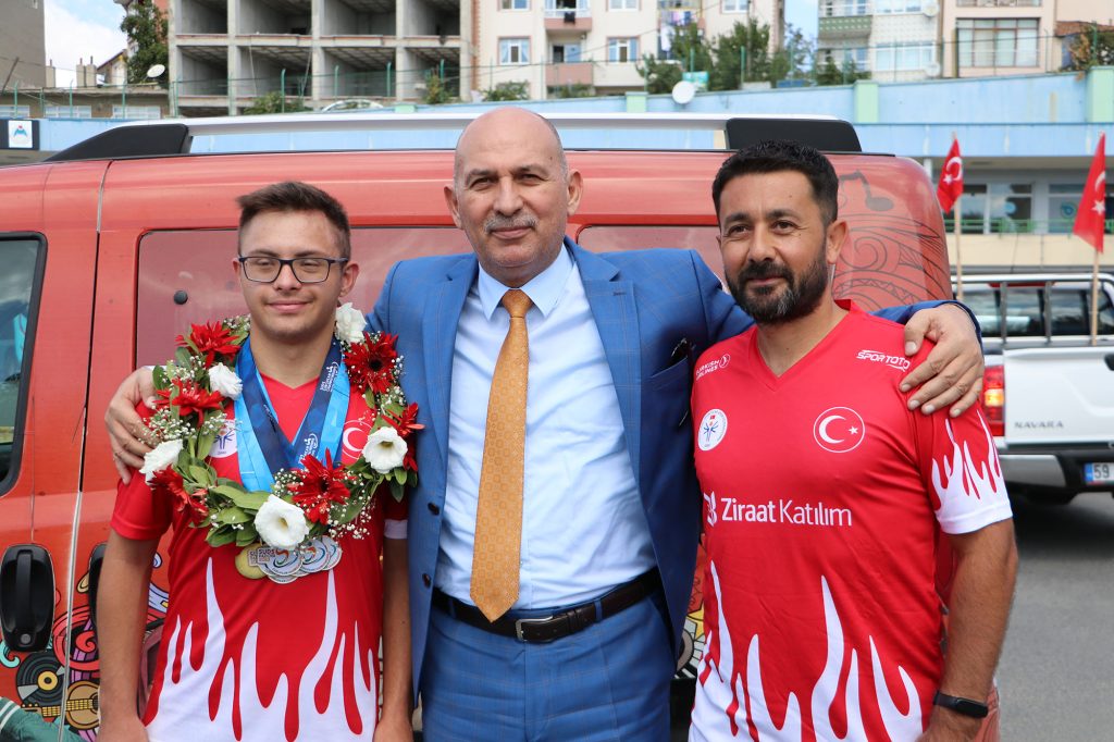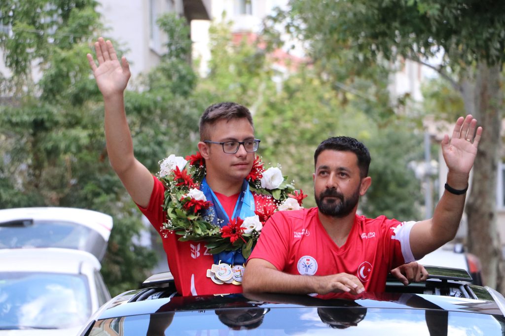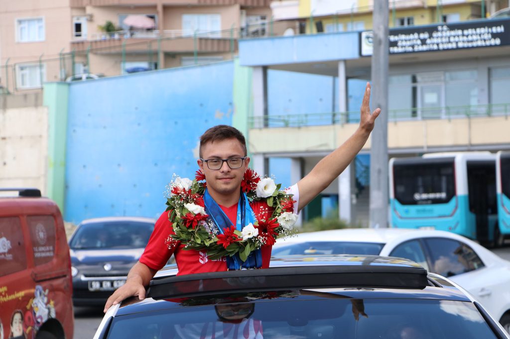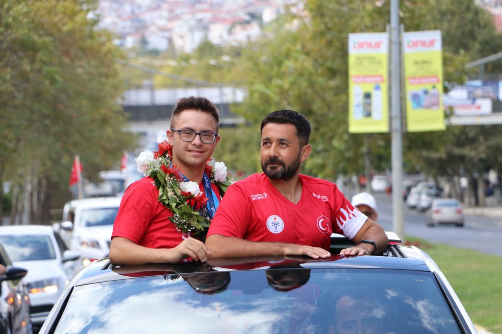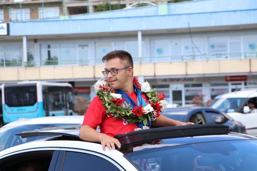 İtalya’da Avrupa Şampiyonu olarak dünya rekoru kıran Down sendromlu özel sporculardan Tekirdağlı Milli Atlet Emirhan Akçakoca’ya Tekirdağ’da görkemli karşılama, dünya rekoru sahibi ve Avrupa Şampiyonu Akçakoca’ya karşılama sonrası şehir turu attırılarak konvoy yapıldı.